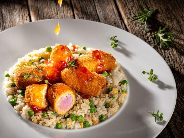 Cocoș pitic copt la cuptor cu cartofiori copți
